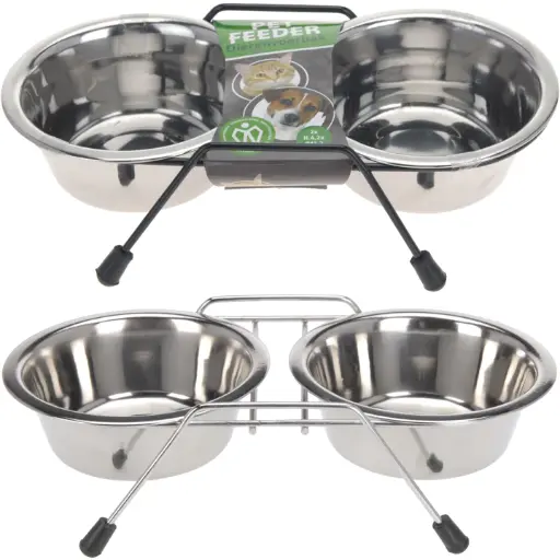 Metal dog bowl with support in 2 parts