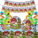 Ce kit   comprend 16 grandes assiettes, 16 assiettes à dessert, 16 gobelets, 16 serviettes en papier, 16 fourchettes, 16 couteaux, 16 cuillères,16 pailles, 1 bannière Happy Birthday, 1 nappe papier 137*274cm.