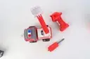 L'ensemble 4 en 1 se compose d'un camion de pompiers , d'un tournevis -/+ , d'une télécommande et d'une perceuse visseuse 2 en 1. Avec l'émetteur fourni, vous pouvez soit conduire le camion de pompiers (avant-arrière) ou l'utiliser comme perceuse à vis tout en faisant des petits travaux.