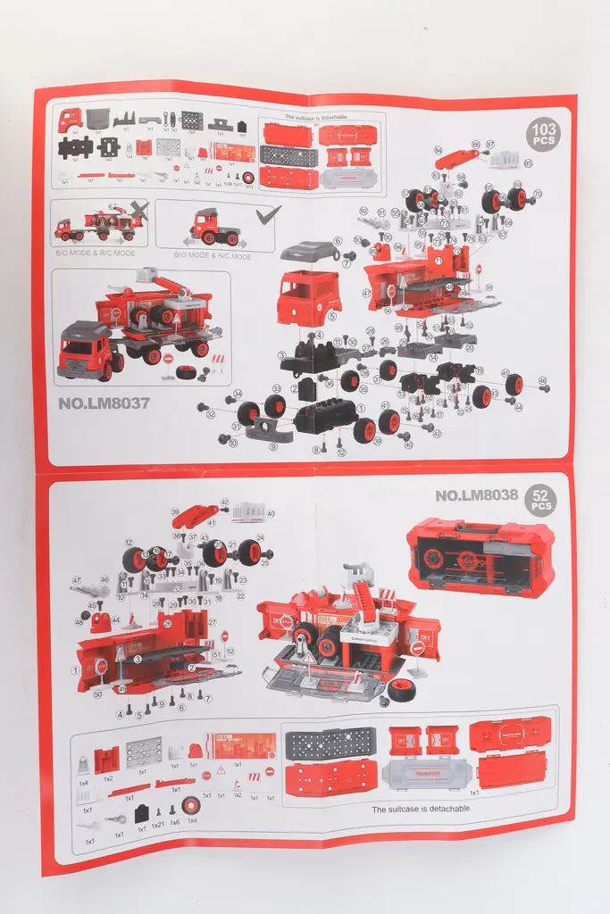 Assemblez votre camion de pompiers avec cet ensemble de DIY! Ce camion de pompier  éducatif de 24 pièces se démonte et remonte entièrement !